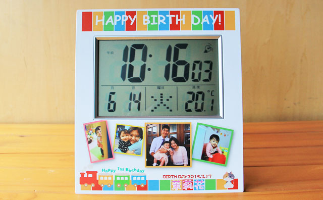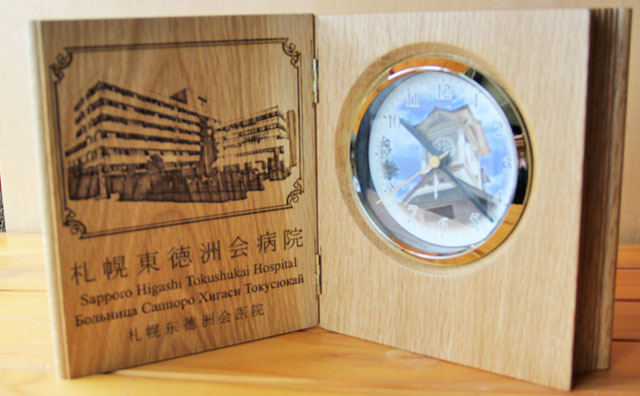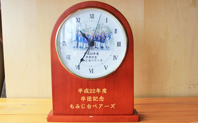 ずっと使える記念時計です。写真や名前、メッセージを入れられます。木製ブックレット型でいつまでもご自宅に置いて置けるのがポイント。もちろん、お一つから大丈夫です!